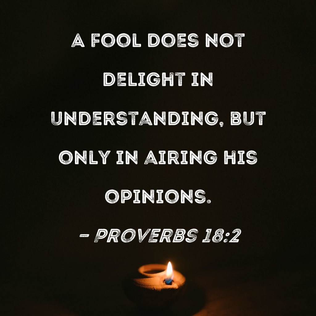 Proverbs 18: 2 Fools have no interest in understanding; they only want to air their own opinions.