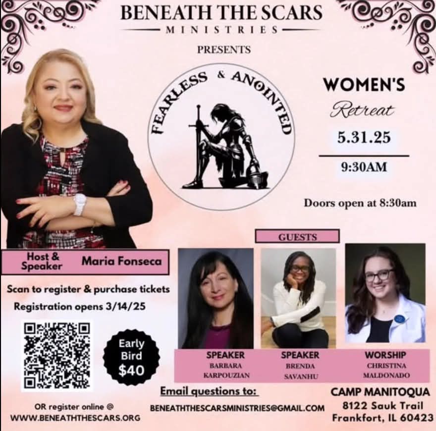 Come join us for “Fearless & Anointed” May 31, 2025 presented by Beneath the Scars Ministries.